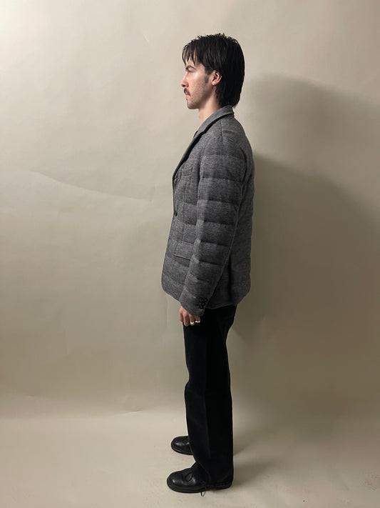Moncler Grey Herringbone Wool Down Filled Rodin Jacket Medium - M
