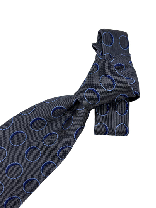 Turnbull & Asser Steel Grey & Navy 3D Circle Pattern Silk Tie