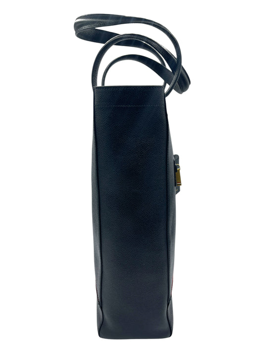 Thom Browne Black Pebbled Leather Stripe Tote Bag