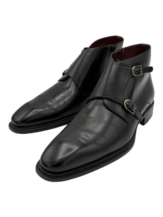 Mezlan Black Leather Double Monk Strap Side Zip Boots 12 M / 13.5 W