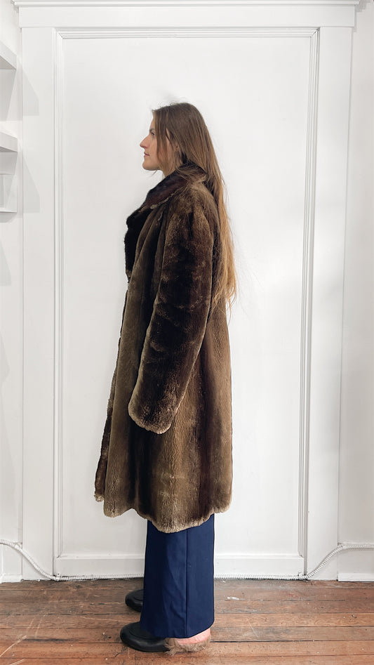 Steen & Wright Brown Beaver Fur Overcoat Large