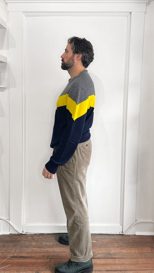Eleventy Grey, Yellow, & Navy Cashmere Knit Crewneck Sweater XXL