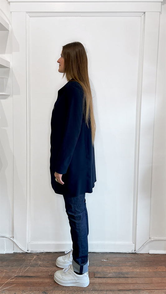 Herno Navy Blue Polyamide Blend Mid Length Lightweight Overcoat 42