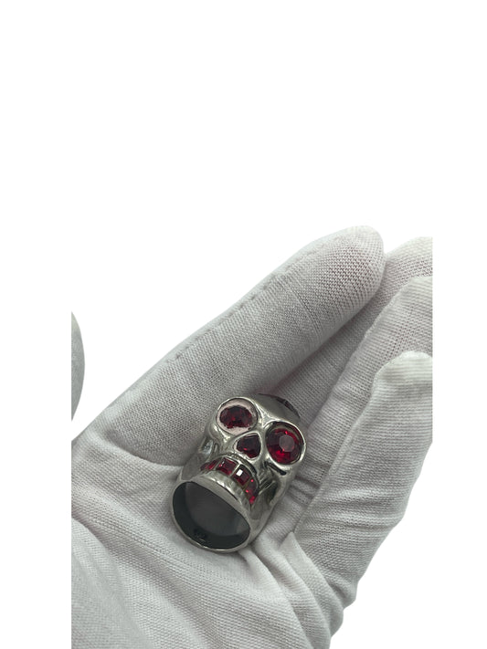 Alexander McQueen Silver & Red Crystal Skull Ring 7