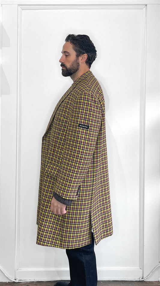 Balenciaga Yellow, Red, & Grey Plaid Wool DB Oversized Overcoat 40
