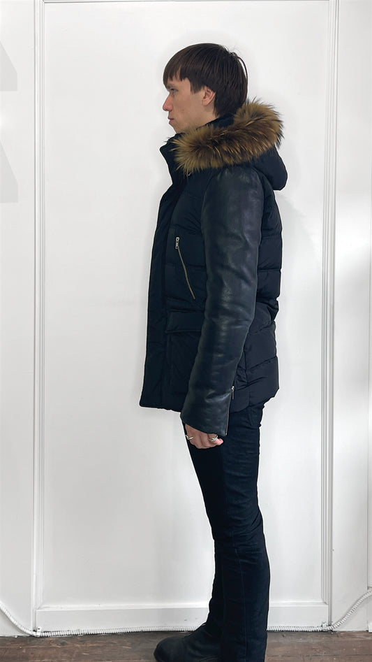 Mackage Black Leather Sleeve Down Filled Jacket 36