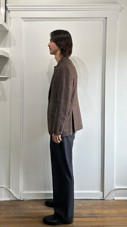 Brunello Cucinelli Brown & Blue Windowpane Wool Blend Unlined Sport Coat 40