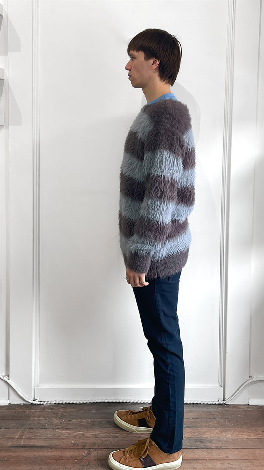 Number (N)ine Grey & Blue Striped Nylon Hairy Crewneck Sweater Medium - M