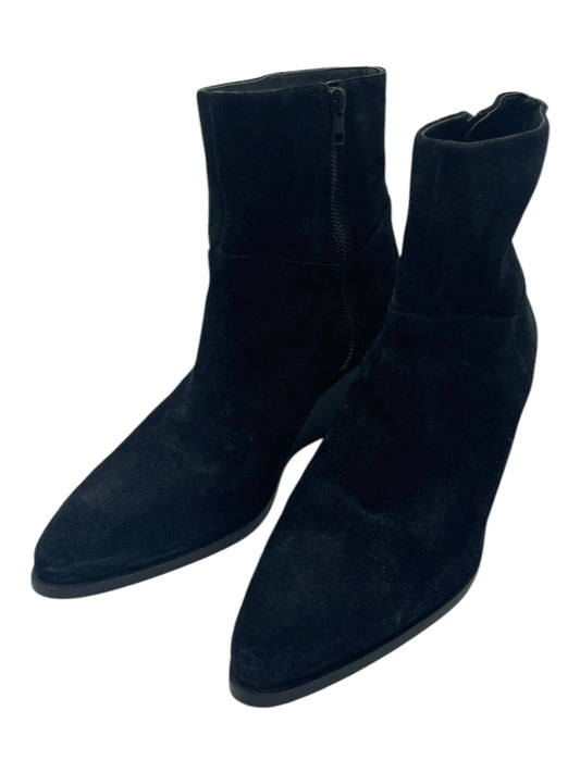 Vince Black Suede Pointed Toe Wedge Boots 7.5 M / 9 W