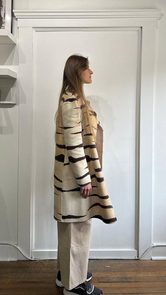 Valentino Tan & Brown Tiger Stripe Fleece Wool Overcoat 44