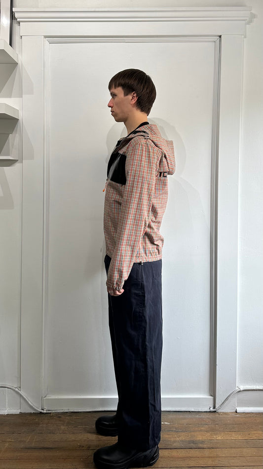 Helmut Lang White & Orange Techno Plaid Zip Up Jacket Extra Small - XS