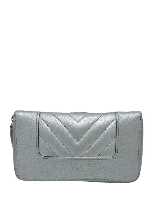 Chanel Silver Lambskin Chevron Quilted Mademoiselle Wallet