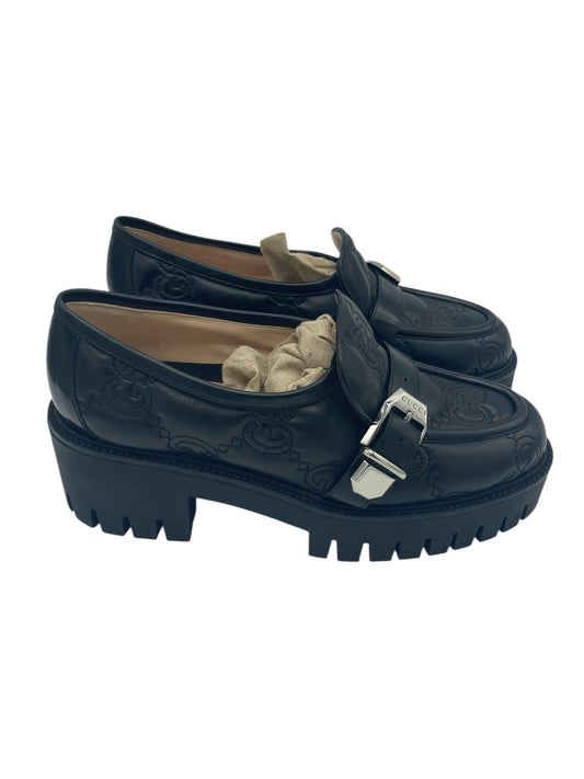 Gucci Black Leather GG Matelasse Platform Loafers 8 M / 9.5 W