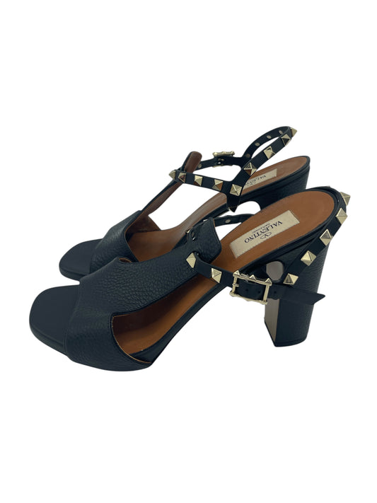 Valentino Black Pebbled Leather Rockstud Heeled Sandal 8 M / 9.5 W