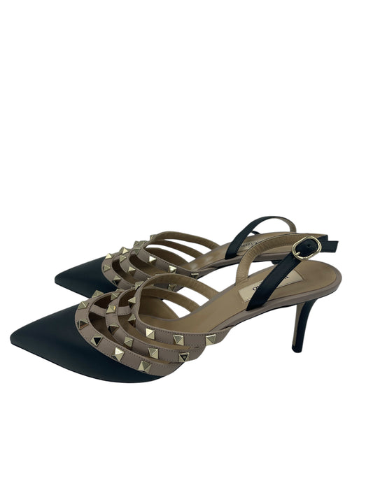 Valentino Black & Beige Leather Rockstud Caged Slingback Pumps