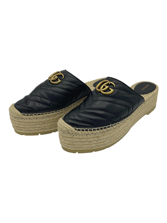 Gucci Black Leather Marmont GG Espadrille Sandals 8 M / 9.5 W
