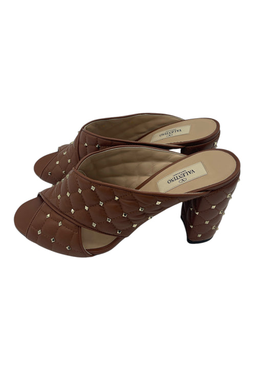 Valentino Light Brown Leather Rockstud Crossover Heels