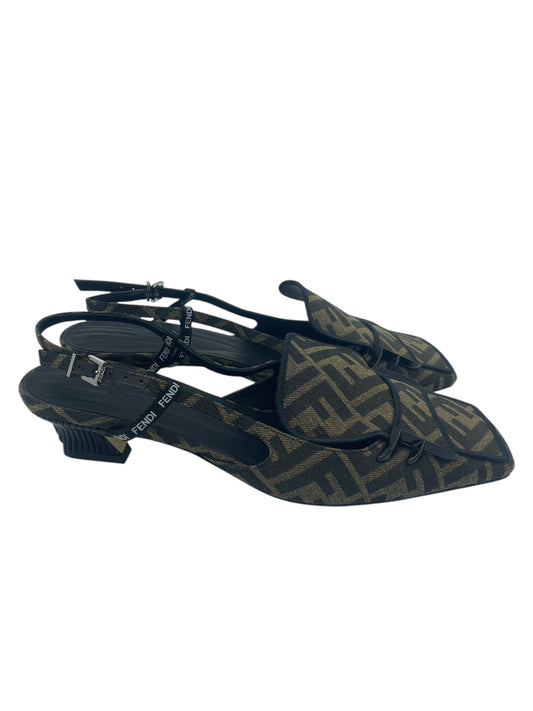 Fendi Brown Canvas & Leather FF Freedom Slingback Pumps 8 M / 9.5 W