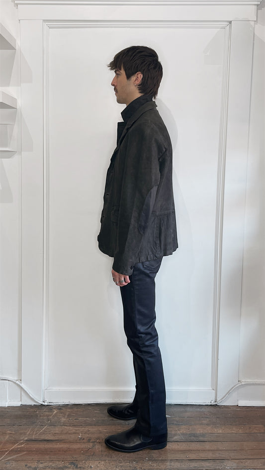 All Saints Dark Grey/Green Goat Suede Survey Blazer Extra Large - XL