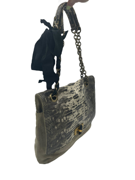 Lanvin Beige & Black Lizard Embossed Suede & Leather Happy Shoulder Bag