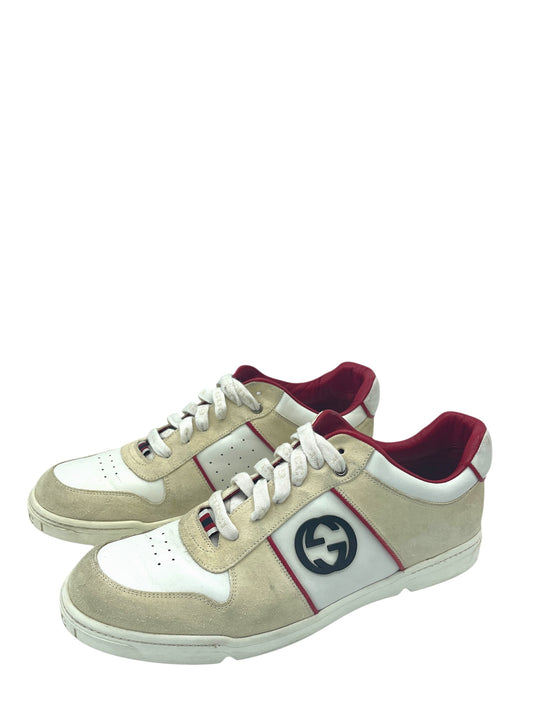 Gucci White, Off White, & Red Interlocking G's Sneakers 11 M / 12.5 W