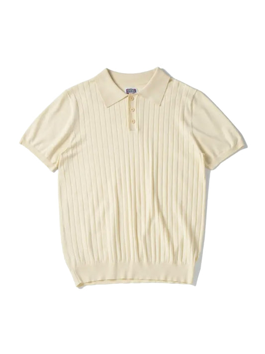 Cream Knit Cotton Cuffed Short Sleeve Shirt