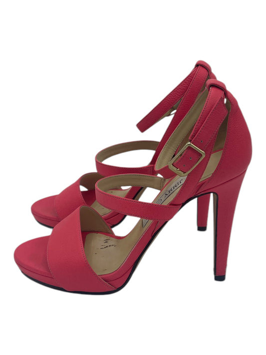 Jimmy Choo Pink Pebble Leather Multi Strap Heels 6.5 M / 8 W