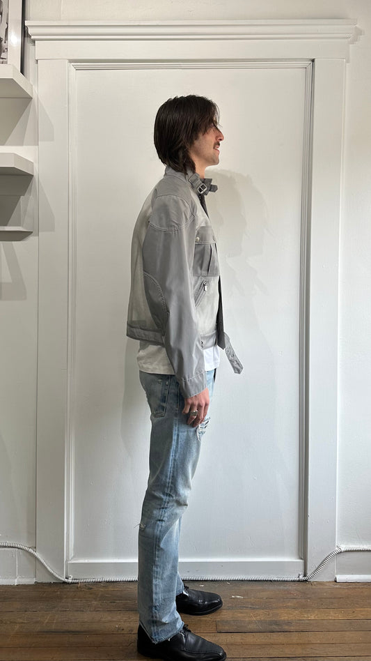 Belstaff Light Grey Nylon Mesh Panelled Motorcycle Jacket Medium - M