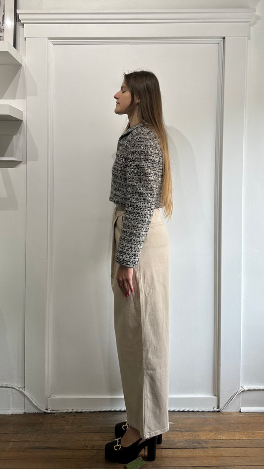 Valentino Black, White, & Beige Tweed Cropped Collared Jacket 10