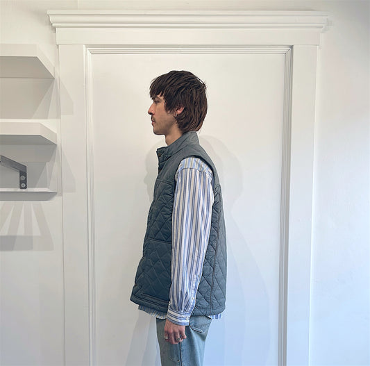 Filson Slate Blue Quilted Nylon Button Up Vest Medium