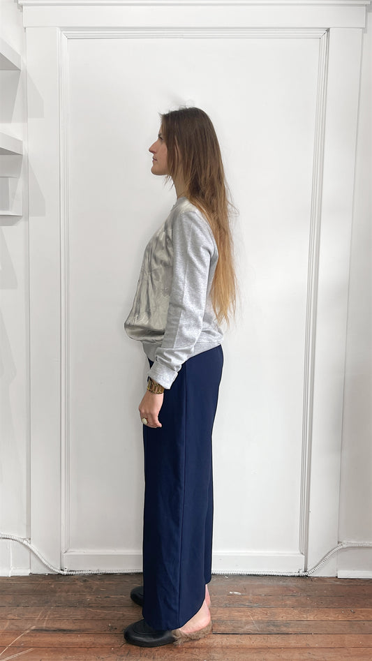 Prada Light Grey Quilted Satin Front Crewneck Sweater Large
