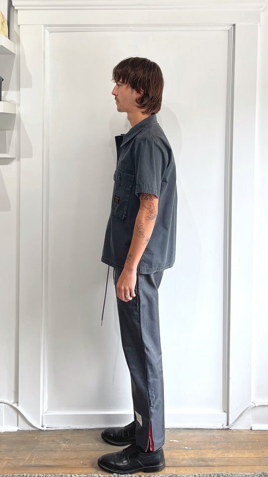 Thom Browne Charcoal Grey & White Graph Check Button Leg Track Pants 1