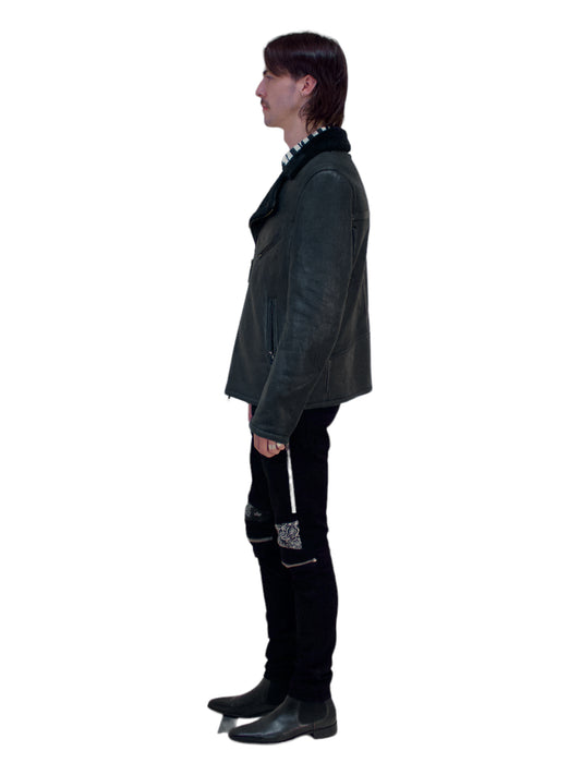Mackage Black Shearling Leather Bomber Jacket