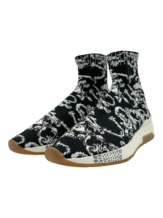Versace Black & White Abstract Pattern Knit Sock Runners