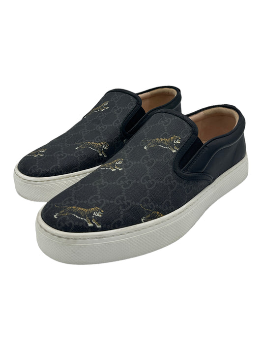 Gucci Black GG Supreme Tiger Slip-on Sneakers