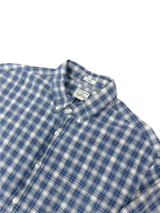 J. Crew Blue and Grey Plaid Button Down Shirt - Large
