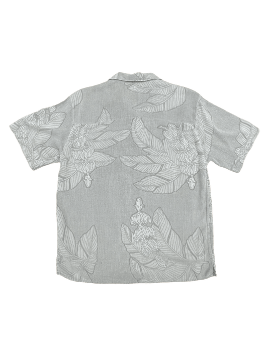 Silk Grey Floral Button Up Short Sleeve Shirt Medium - M