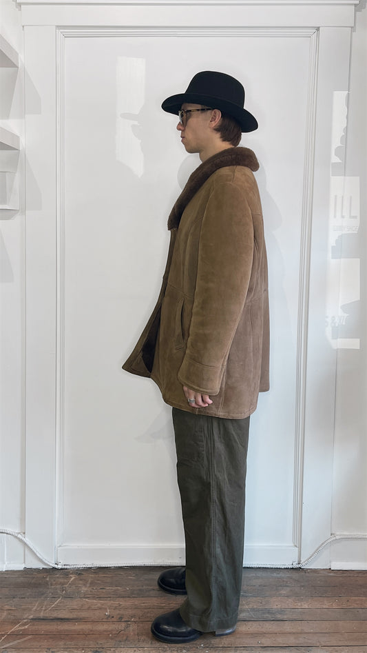 Wolff of Canada Light Brown Sheepskin Shawl Collar Overcoat Medium