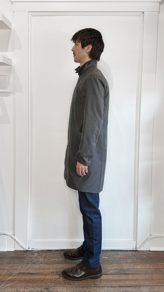18 Waits Dark Grey Waxed Cotton DB Overcoat Small