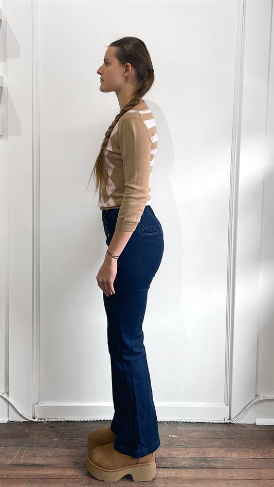 Burberry Camel & Light Pink Argyle Cotton Sweater Small
