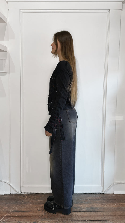 H Anarchy Black Cotton Knit Distressed Cardigan Medium