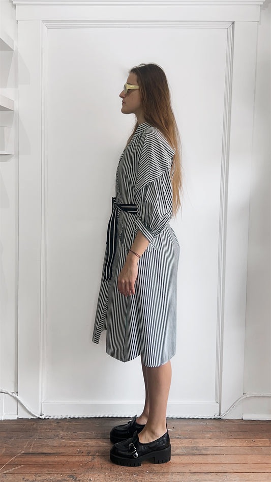 Maje White & Green Striped Collared Shirt Dress Size 2