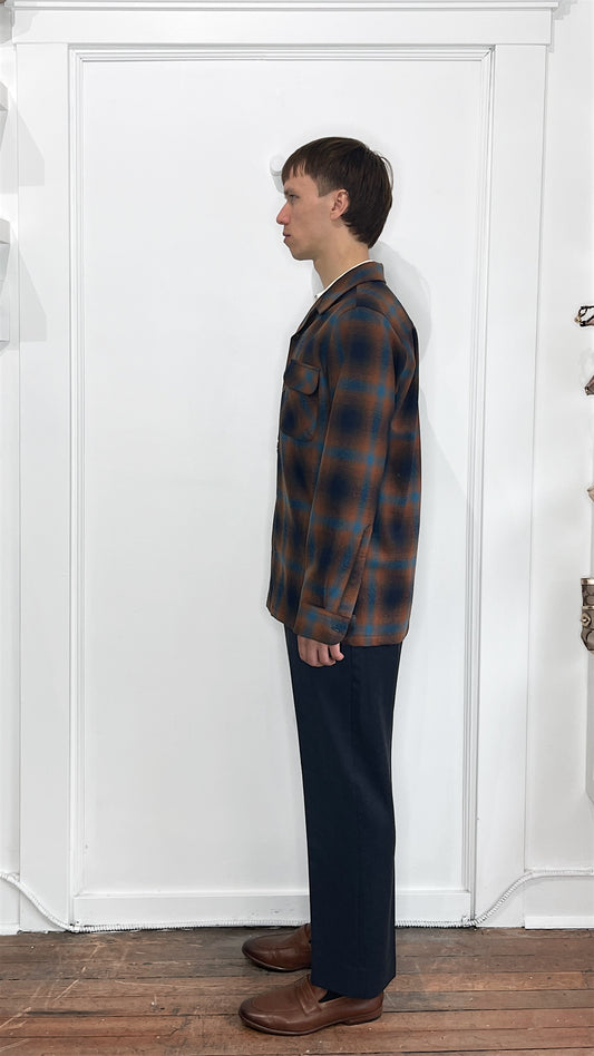Pendleton Teal & Copper Plaid Wool LS Camp Shirt Medium