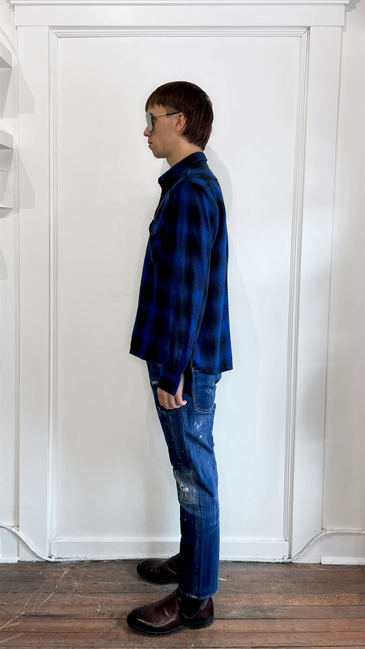 Rogue Territory Royal Blue & Black Plaid Heavy Overshirt Large