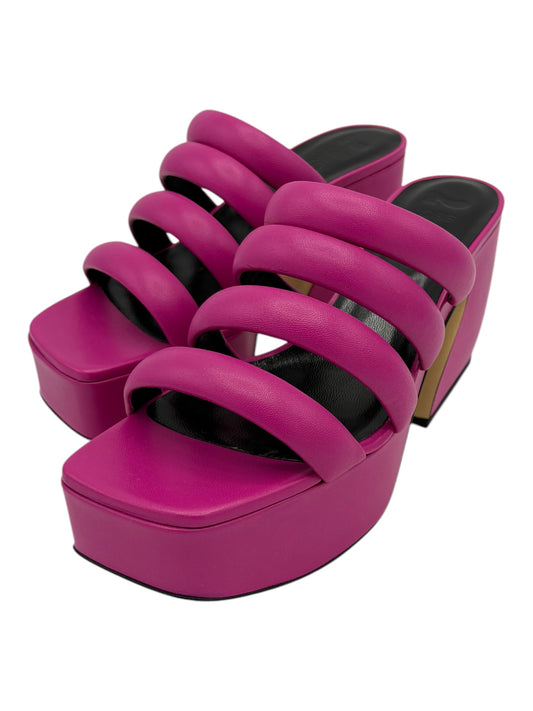Sergio Rossi Pink Leather 4 Strap Block Heel Mules 7.5 M / 9 W