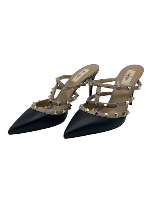 Valentino Black & Beige Leather Rockstud Caged Pumps 8 M / 9.5 W