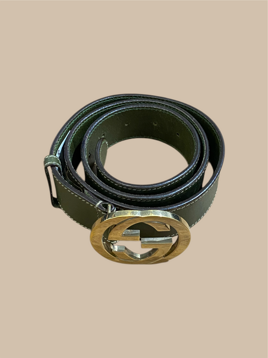 Gucci Olive Green Leather GG Buckle Belt 36