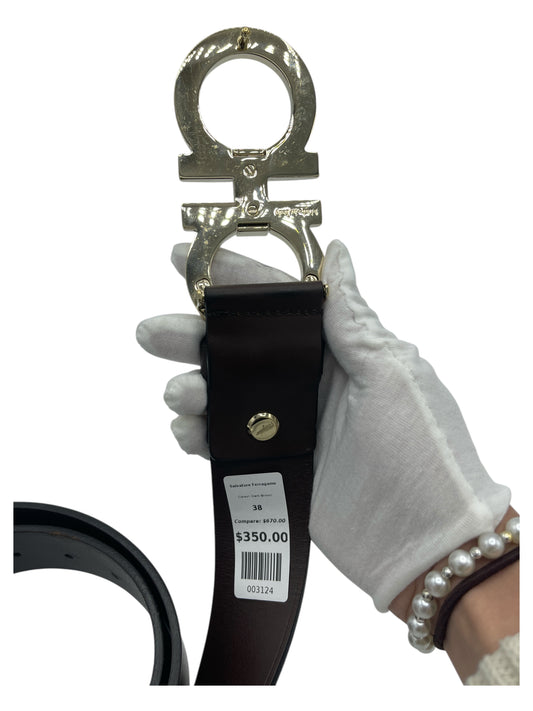 Salvatore Ferragamo Dark Brown Leather & Gold Gancini Buckle Belt 38