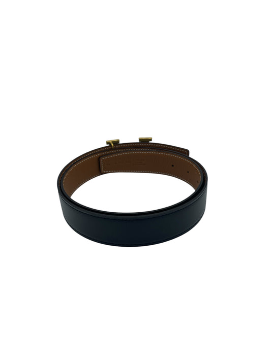 Hermes Black & Light Brown Reversible 'H' Buckle Belt 33