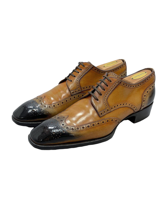 Paul Smith Light Brown Toe Stamped Leather Wingtip Oxford Dress Shoes
